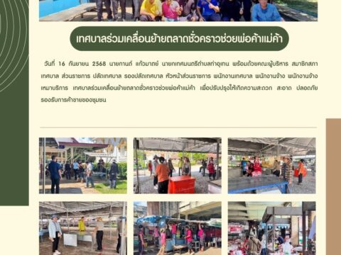 เทศบาลร่วมเคลื่อนย้ายตลาดชั่วคราวช่วยพ่อค้าแท่ค้า 2568