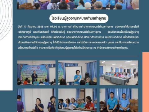 โรงเรียนผู้สูงอายุเทศบาลตำบลท่าอุเทน วันที่ 17 กันยายน 2568 เวลา 09.00 น. นายกานท์ แก้วมาตย์ นายกเทศมนตรีตำบลท่าอุเทน มอบหมายให้นายธนโชติ เจริญราษฎร์ นายเกียรถีพงษ์ ก็ถิศรีวรพันธุ์ รองนายกเทศมนกรีตำบลท่าอุเทน