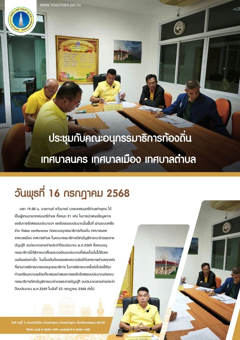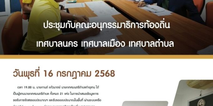 ประชุมกับคณะอนุกรรมาธิการท้องถิ่น เทศบาลนคร เทศบาลเมือง เทศบาลต่าบล วันพุธที่ 16 กรกฎาคม 2568