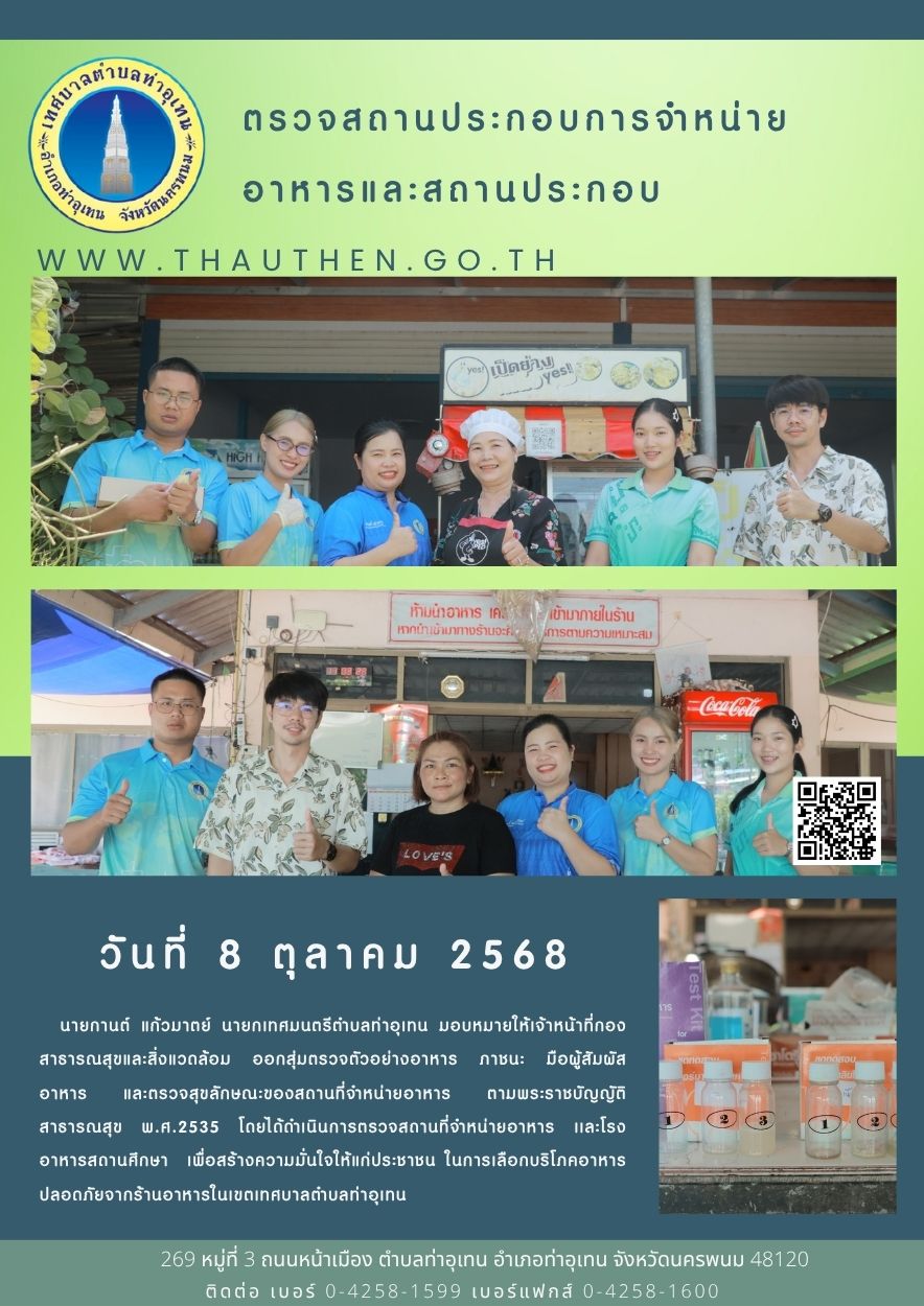 • ประกาศใช้เทศบัญญัติเทศบาลตำบลท่าอุเทน เรื่อง การติดตั้งบ่อตักไขมันบำบัดน้ำเสียในอาคาร พ.ศ. ๒๕๖๖